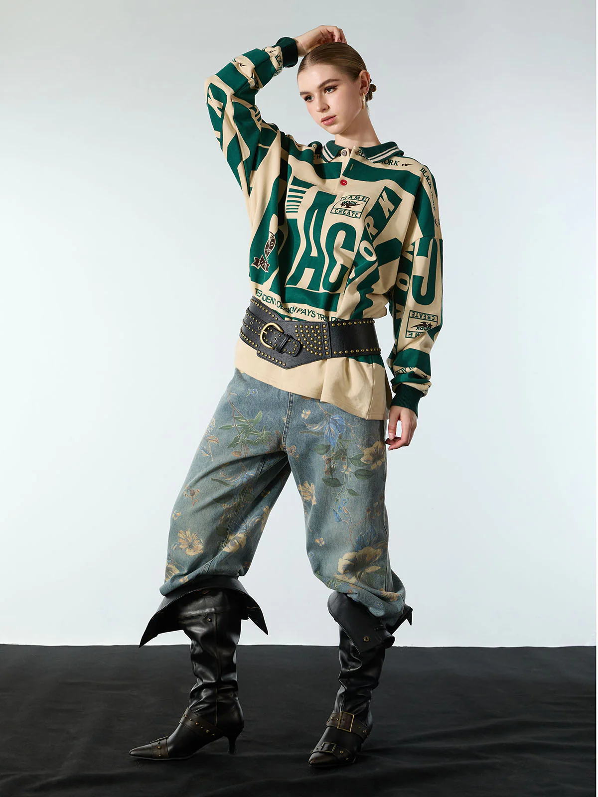• Detail Features: Crew Neck, Long Sleeves, Graphic Print, Ribbed Cuffs and Hem