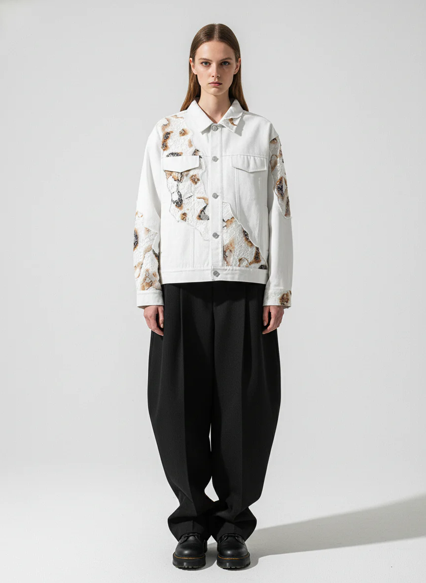 Thesupermade American Retro Lace Patchwork Denim Jacket
