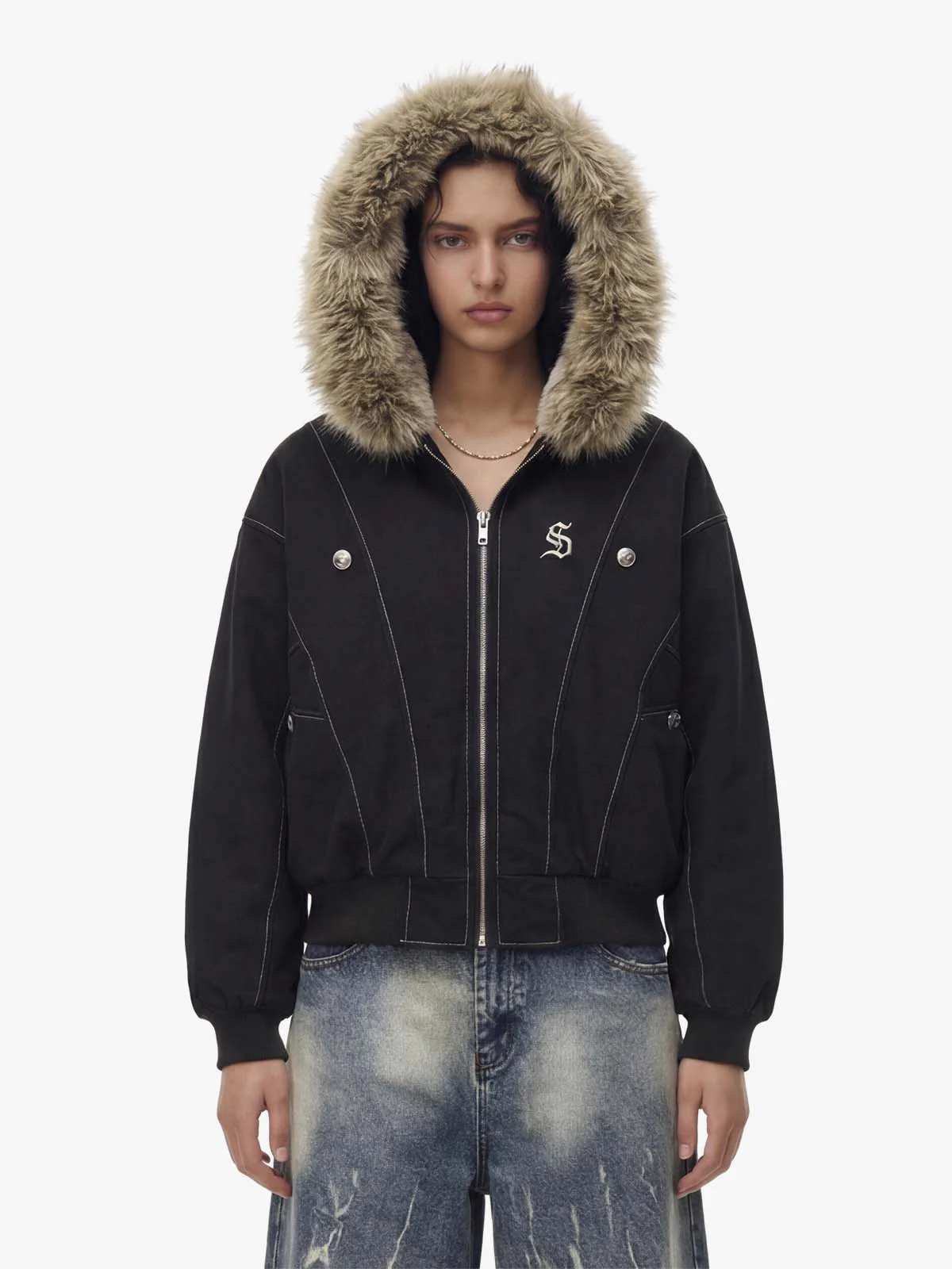 • Detail Features: Ribbed Cuffs and Hem, Front Zipper Closure, Faux Fur Lined Hood